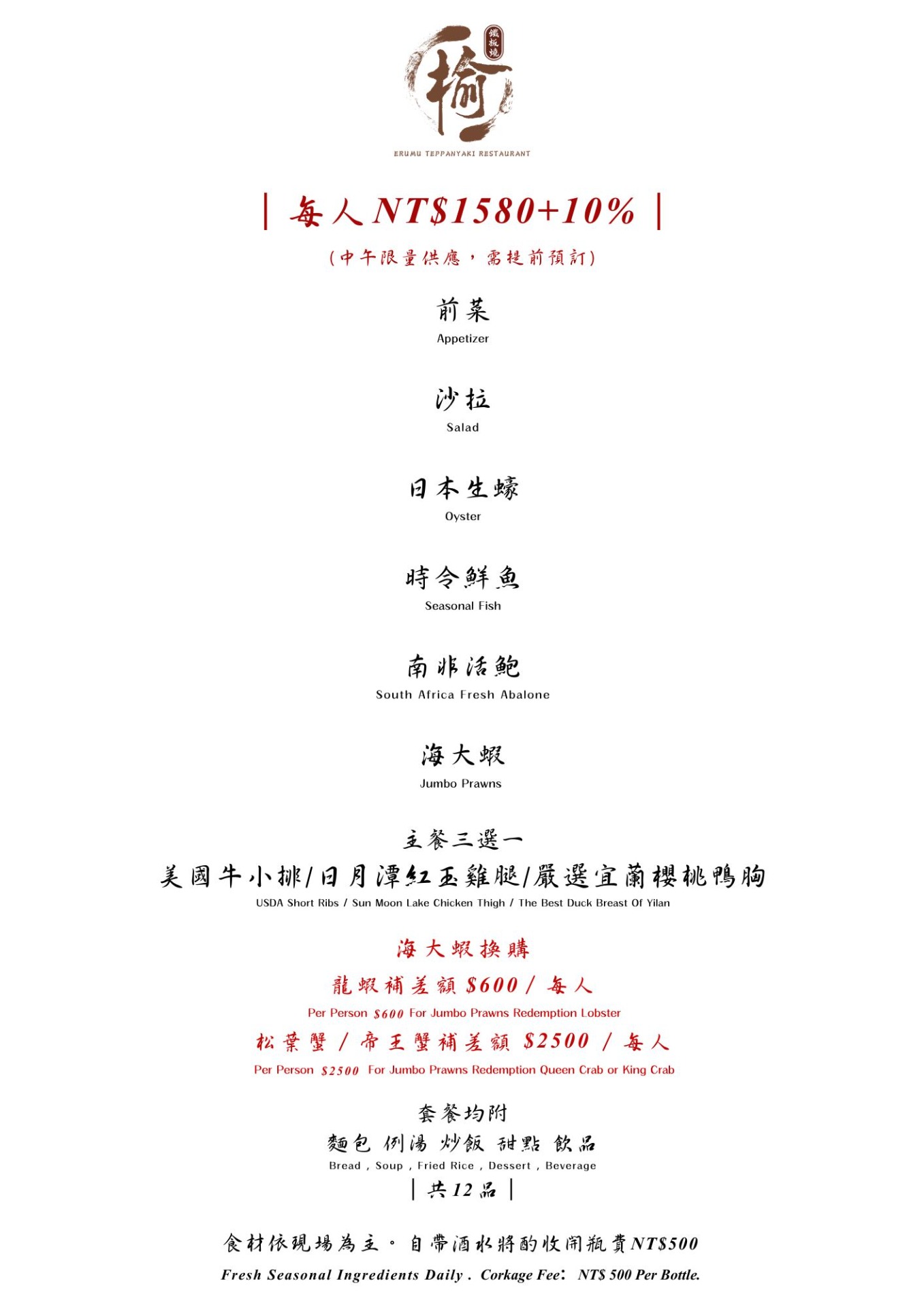 $1580單人套餐(中午限量供應,需提前一天預訂)
